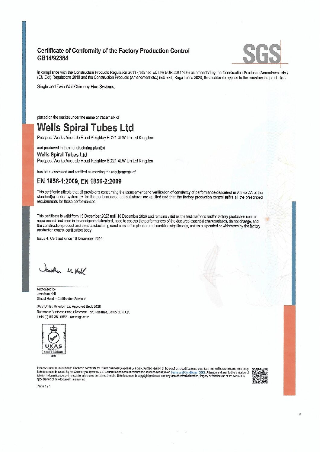 Both our Single/Twin Wall Flue Systems have been tested by BSRIA and have been awarded a CE Certificate.